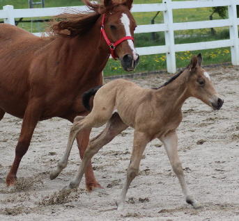 Sire: Shiners Voodoo Dr ( 2013 NRHA DERBY Open L4 Open Finalis;2012 NRHA DERBYL4 Open Co-Reserve Champion; 2012 AQHA WORLD SHOW Jr Reining Open Finalist; 2010 NRHA FUTURITY Open L4 Finalist; 2010 ARIAT TULSA REINING CLASSIC; Level 3 & Level 2 Open Champions. Shiners Voodoo Dr ist einer der gewinnreichsten Söhne von Shining Spark Wenn er geshowt wurde war er jedesmal im Finale auf den grossen Shows. Mit wenigen Fohlen aus den ersten Jahrgängen hat er bereits jetzt Offspring earnins von > 370.000 $